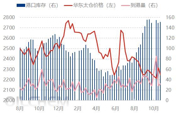据隆众资讯,截至2025年10月22日,中国甲醇港口库存总量在151.22万吨,较上一期数据增加2.08万吨。其中,华东地区累库,库存增加3万吨;华南地区去库,库存减少0.92万吨。本周甲醇港口库存窄幅积累,受天气因素影响,华东地区较长时间封航,再加上其他因素,导致外轮卸货延续不及预期,周期内外轮显性计入22.48万吨。华东地区主流社会库提货明显缩量,出货困难,江苏外轮进口卸货支撑下库存明显积累;浙江地区刚需稳定,外轮卸货不足下库存减少。本周华南港口库存呈现去库。广东地区周内以内贸船货抵港为主,主流库区提货量稳健,库存亦有去库。福建地区进口货源继续补充供应,另有个别在卸船只尚未全部计入库存,下游维持刚需消耗,因此小幅累库。
