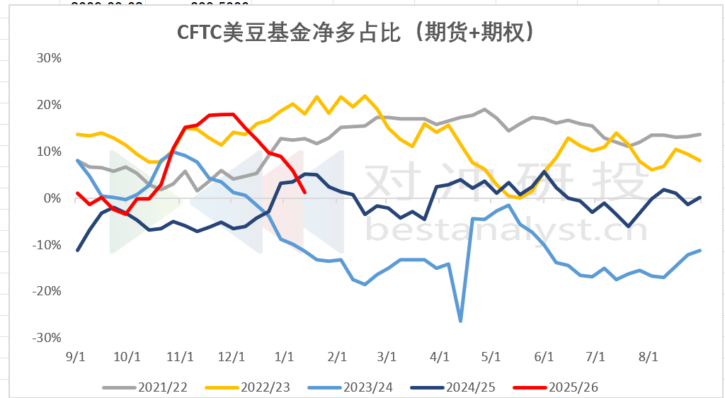 CFTC美豆基金:截至1月13日期货+期权非商业基金净多持仓减44756至12961张