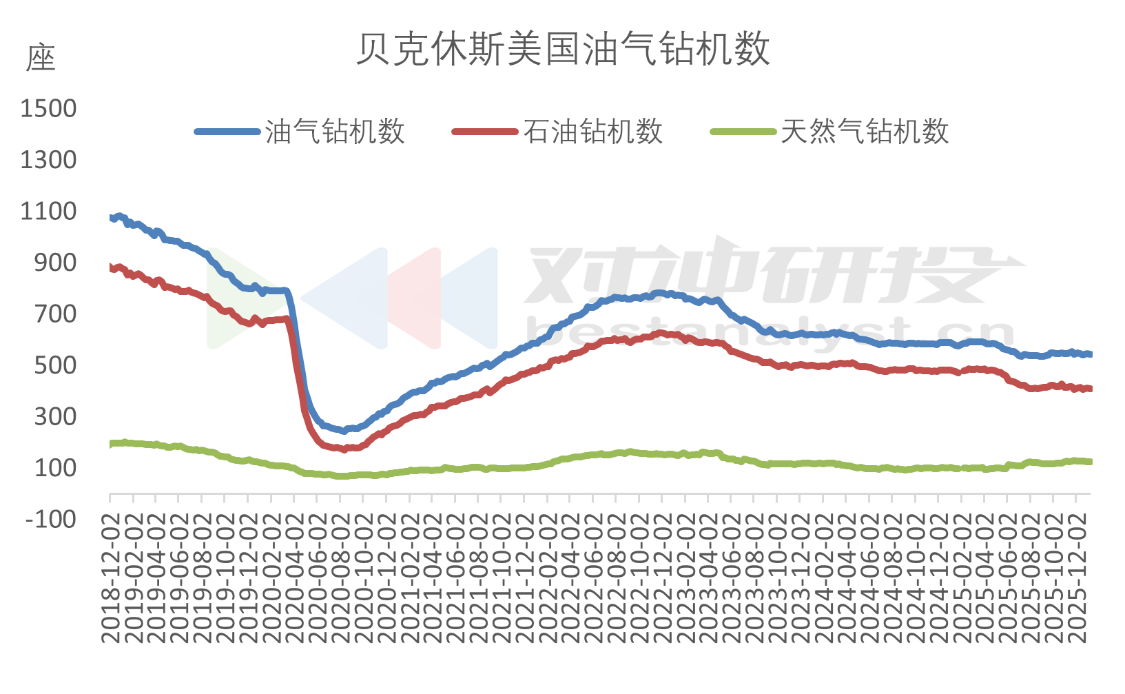 贝克休斯:美国石油和天然气钻机总数减少1座至543座,同比减少6.38%