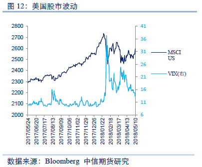 本周,美国公布4月CPI数据,整体不及预期:4月CPI环比0.2%,核心CPI环比0.1%,均不及预期;4月CPI同比2.5%符合预期,核心CPI同比2.1%不及预期。尽管当前通胀没有明显提升,但市场对于美联储6月加息的预期仍然维持高位。货币市场利差高企的情况本周继续回落,TED Spread和Libor-OIS分别下跌至47.83bp和48.73bp,月度收窄20%和16%。