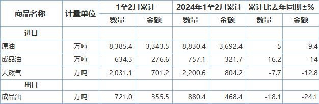 据海关总署,2025年1-2月中国原油进口量为8385.4万吨,较去年同期的8830.4万吨下滑5%。