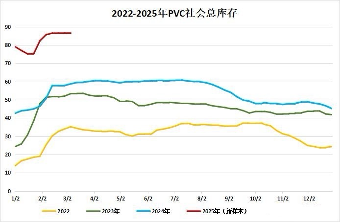 截至3月6日,市场需求继续回升,PVC社会库存微降0.02%