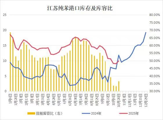 截至10月20日,江苏港口提货减少,纯苯港库周增10%