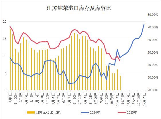截至10月27日,江苏港口提货尚可,苯乙烯港库周降4.69%