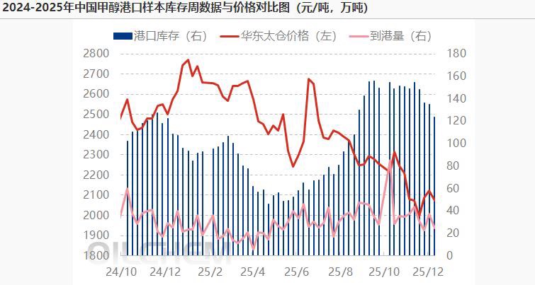 截至12月10日当周,港口卸货减少,甲醇港库大降11.5万吨