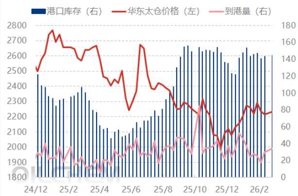 本期甲醇港口库存较节前窄幅积累,虽周期内外轮卸货速度较为一般(两周显性卸入24.24万吨),但假期提货受限同步影响消耗。江苏沿江部分库区有船发支撑提货,但汽运提货寡淡,外轮供应下库存积累;浙江下游表现持稳,卸船不多导致库存下降。本周华南港口库存小幅累库。广东地区周期内进口及内贸船货均有抵港,受假期影响主流库区提货量明显减少,库存呈现累库。福建地区无船货补充,下游开工降低导致消耗速度放缓,提货表现一般,库存窄幅去库。