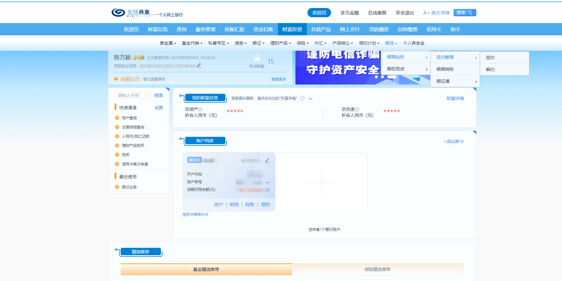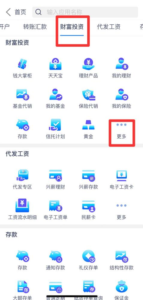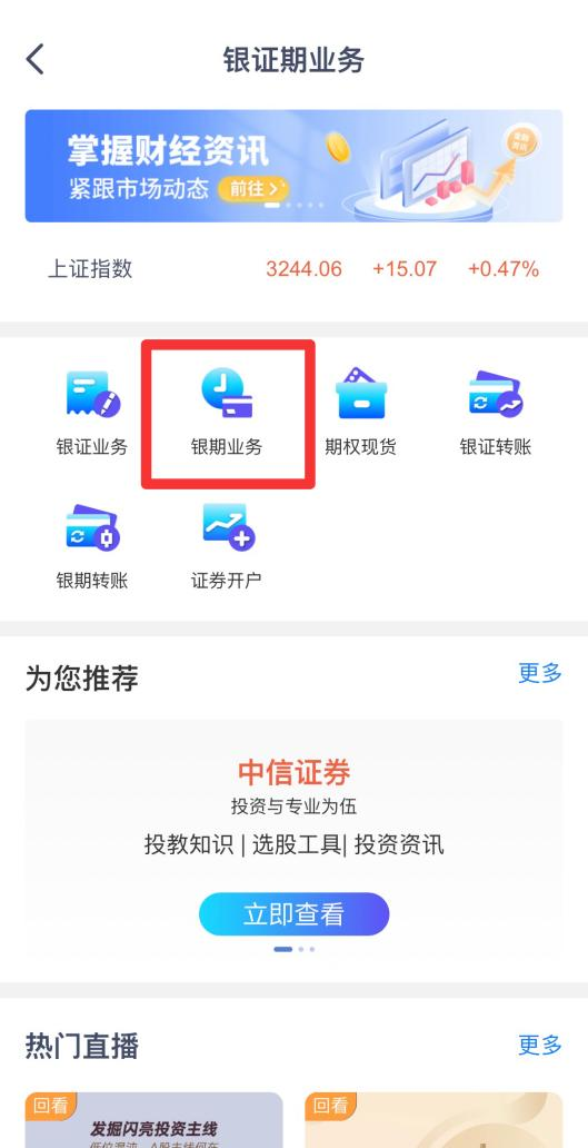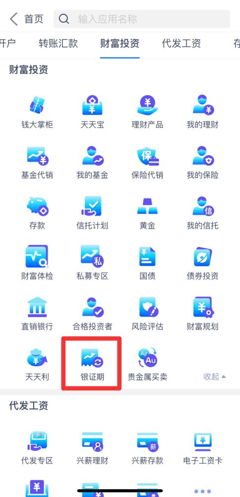 选择财富投资-点击更多-银证期。