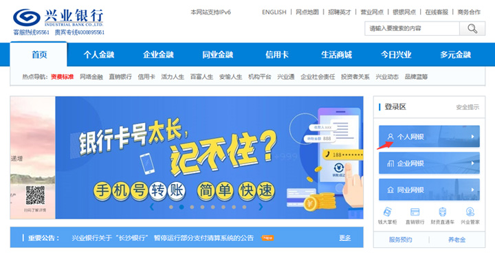 登录个人网上银行。