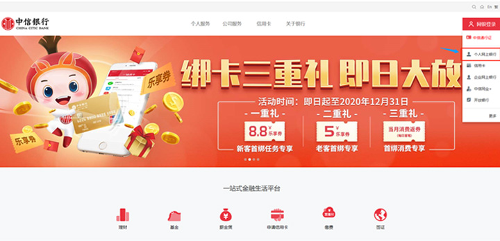 登录个人网上银行。