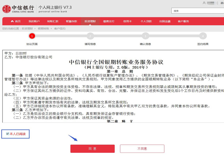 查看协议并勾选本人已阅读-同意。